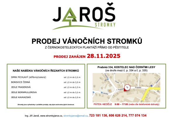 Ing. Jiří Jaroš, IČO: 02292378, +420 723 181 136,+420 606 626 214, stromkyjaros@email.cz